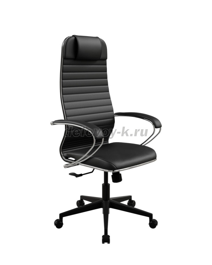 Каркас стальной с полимерным покрытием черного цвета, с хромированным молдингом. Подголовник комплектуется дополнительной вставкой, увеличивающей объем. Обивочный материал спинки: экокожа Extra перфорированная. Прошивка К1.
