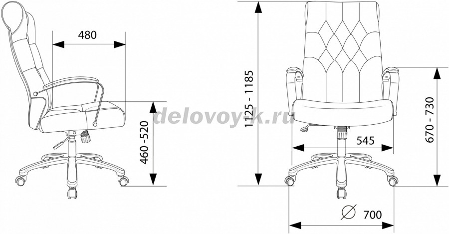 Высота с подлокотниками MIN 670